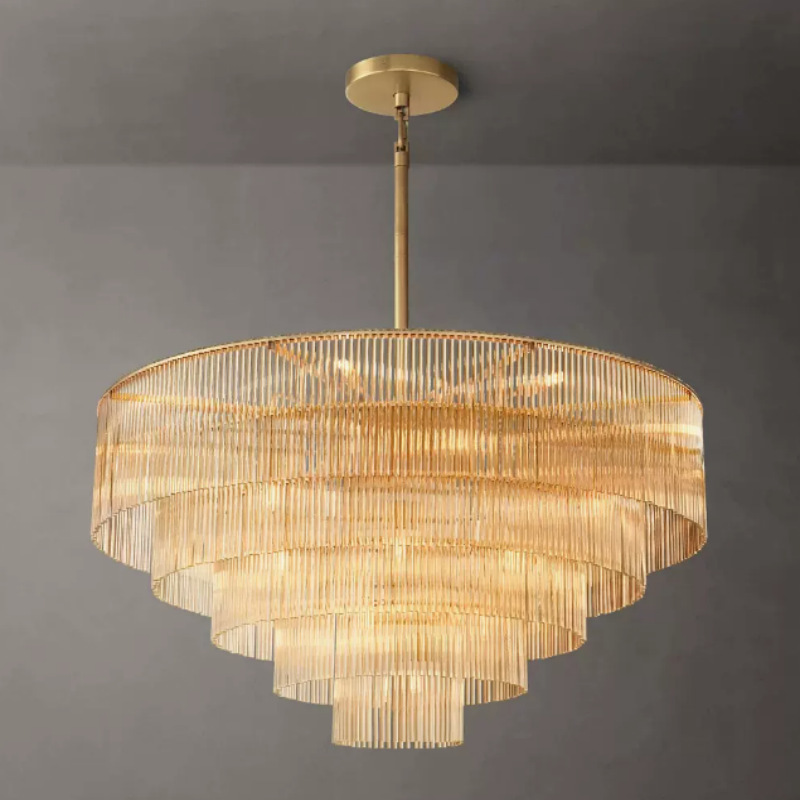 Lampu Gantung Kaca RH Mewah Ringan Lampu Gantung Ruang Tamu Gaya Amerika Penuh Tembaga Hotel Restoran Villa Lampu Tangga Tinggi