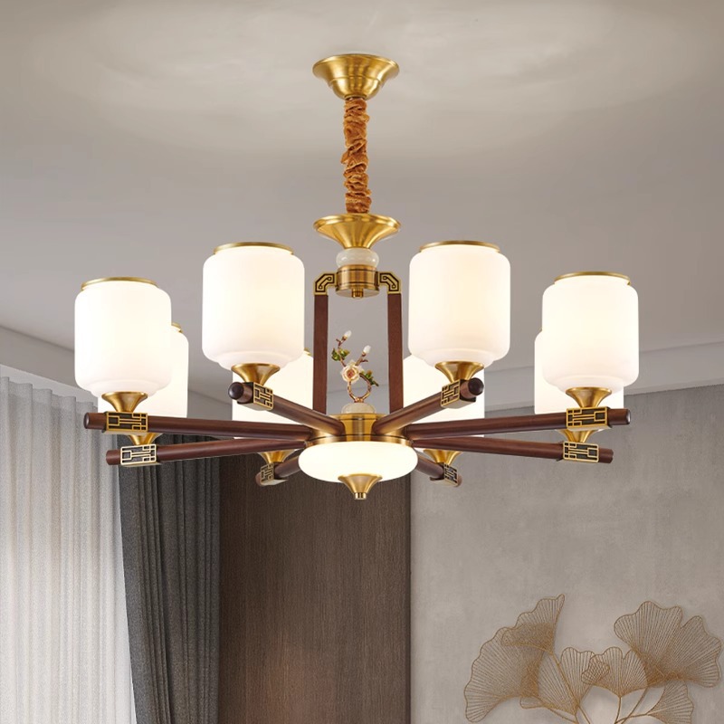 Lampu ruang tamu gaya china, lampu gantung kayu padat tembaga baru gaya china Zen sederhana kamar tidur ruang makan pencahayaan Zhongshan