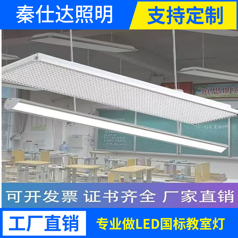 Lampu Kelas LED Standar Nasional Lampu Gantung Langit-Langit Spektral Penuh Pencahayaan Khusus Sekolah Kisi-kisi Anti-Glare untuk Siswa