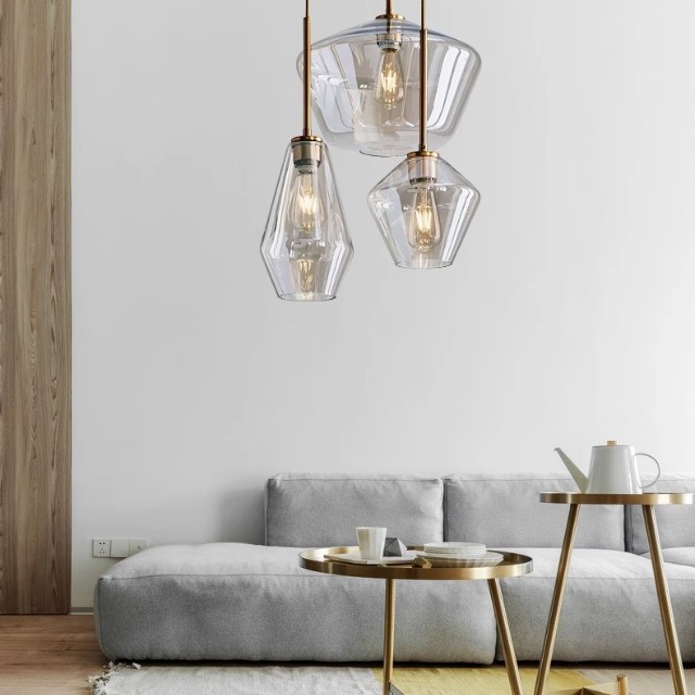 Lampu Meja Makan Satu Kepala Bar Kafe Ruang Tamu Sederhana Modern Nordik Lampu Penutup Kaca Kombinasi Tiga Kepala Kemewahan Ringan Lampu Gantung