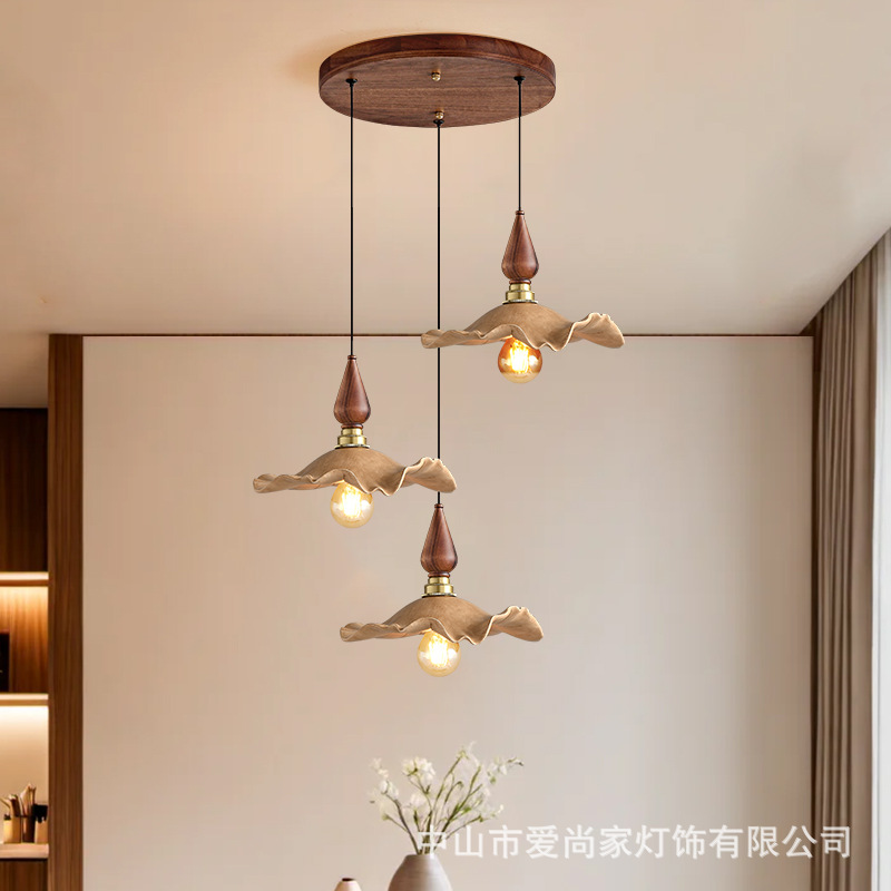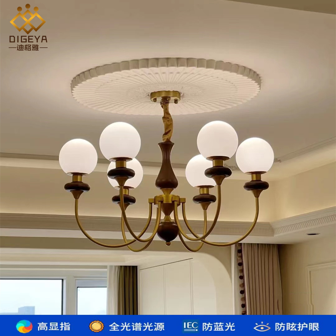 Lampu Gantung Warna Kayu Walnut Retro Gaya Prancis Pelindung Mata Spektral Penuh Lampu Kacang Ajaib Ruang Makan Kamar Tidur Dragon Ball Amerika