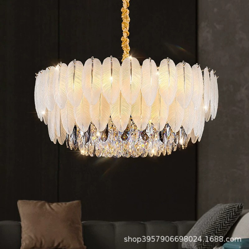2025 Lampu Gantung Kristal Bulu Mewah Ringan Gaya Perancis Lampu Ruang Tamu Modern Sederhana Gaya Krim Ruang Makan Perlengkapan Kamar Tidur