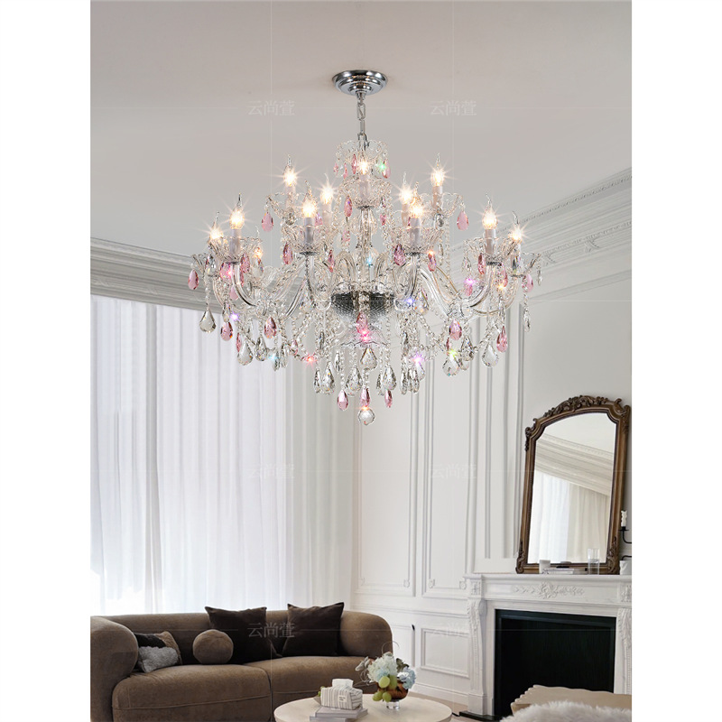 Lampu Gantung Kristal Merah Muda Lampu Ruang Tamu Mewah Ringan Gaya Perancis Lampu Utama Kamar Tidur Putri Hangat Romantis Lampu Lilin Restoran