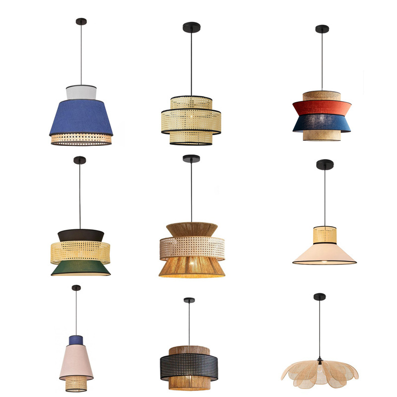 Lampu gantung rotan ruang tamu, lampu gantung rotan sederhana modern kreatif kain kepribadian hotel restoran Jepang