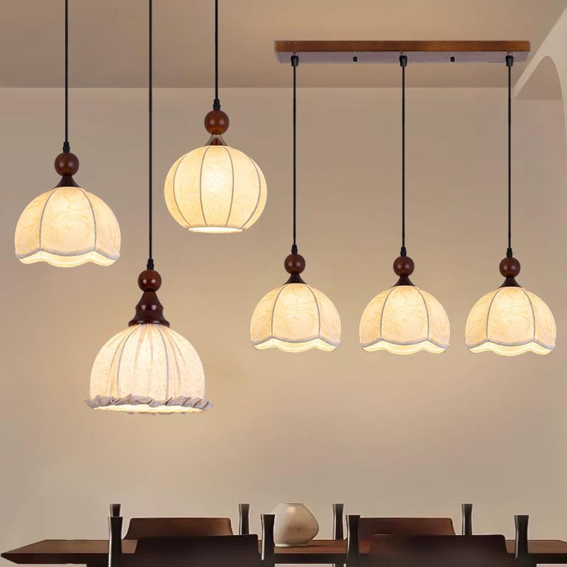 Lampu Gantung Restoran Gaya Pertengahan Lampu Gantung Kamar Tidur Kepala Tunggal Kain Gaya Prancis Tiga Kepala Lampu Ruang Makan Ruang Kopi Retro