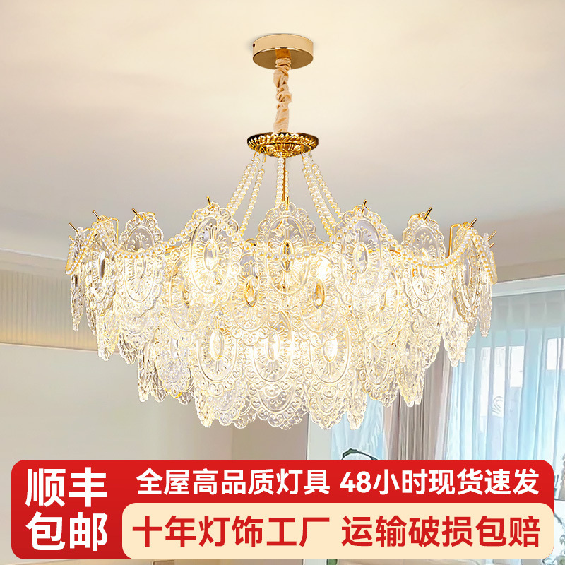 Lampu Chandelier Restoran Gaya Perancis Krim Model Baru 2025 Lampu Meja Makan Pertengahan Lampu Senstif Suasana Kreatif Artistik