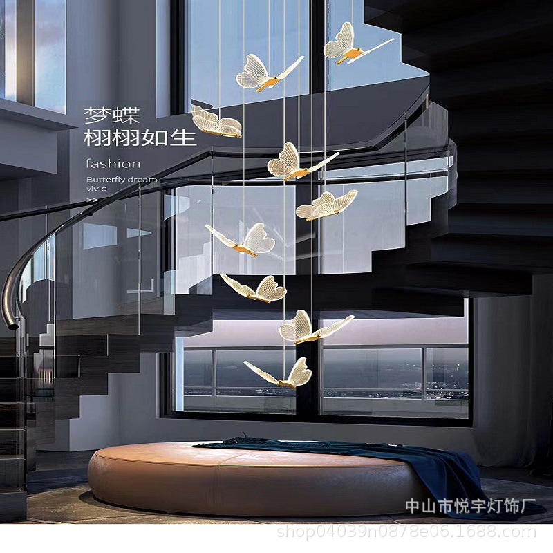 Lampu gantung samping tempat tidur, lampu gantung Nordik mewah kreatif kepribadian kupu-kupu garis panjang Villa tangga restoran modern minimalis