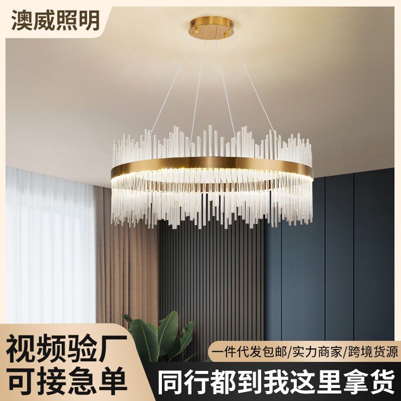 Lampu ruang tamu villa untuk dropshipping lintas batas, bangunan dupleks, hotel, homestay, lampu kristal LED, set pencahayaan seluruh rumah, mewah.