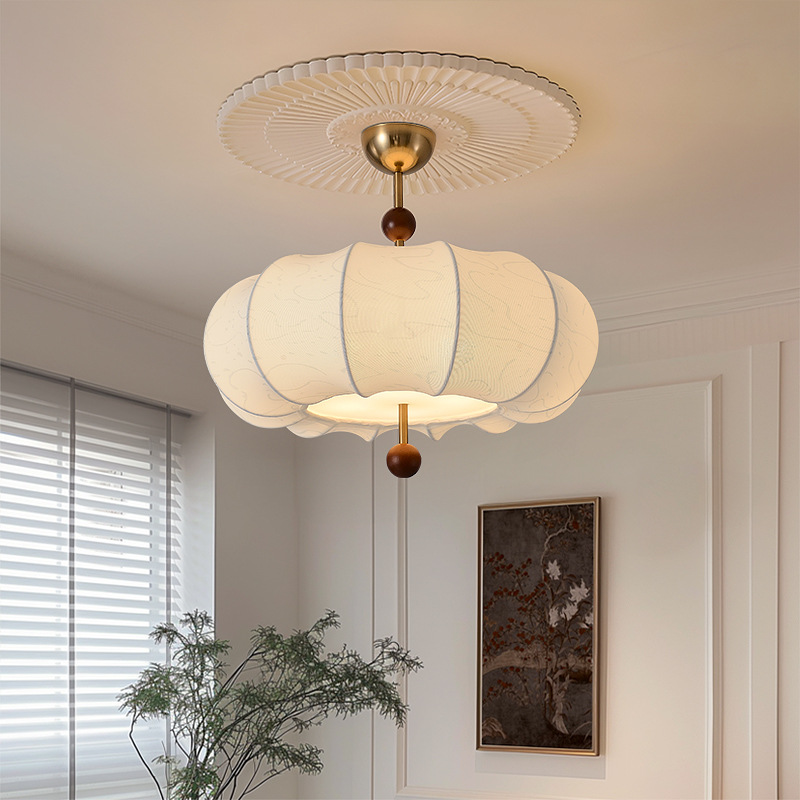 Lampu Gantung Kamar Tidur Retro Prancis Pola Kain Restoran Kuno Nanyang Kayu Solid Lampu Langit-langit Kamar Kamar Tidur Utama Hangat
