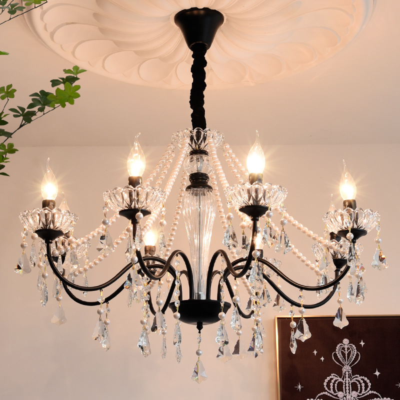 Lampu Kristal Gaya Prancis Lampu Gantung Ruang Tamu Retro Lampu Lilin Warna Hitam Pertengahan Lampu Utama Kamar Tidur Superior Kemewahan Ringan