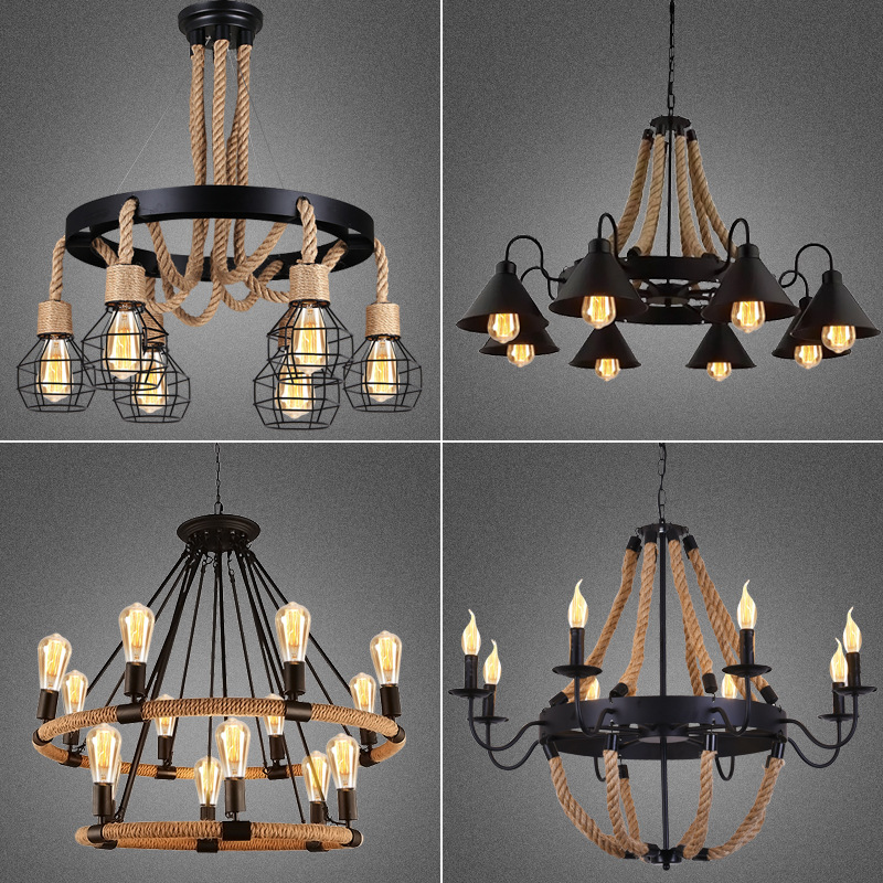 Aobo lampu gantung Amerika restoran pakaian toko kopi kreatif retro gaya industri tali rami besi lampu gantung lintas batas eksklusif