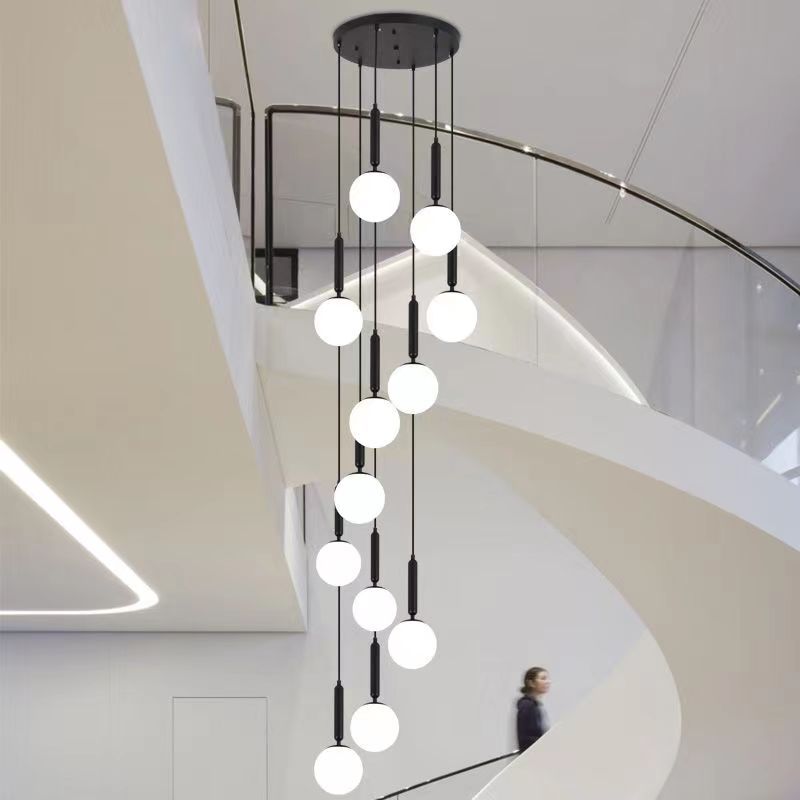 Lampu gantung panjang Nordic, lampu tangga putar tinggi ruang makan ruang tamu lorong hotel villa