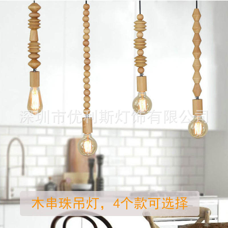 Lampu gantung kayu kreatif log restoran, konter bar kepribadian Retro Jepang manik-manik jendela lampu toko kayu solid