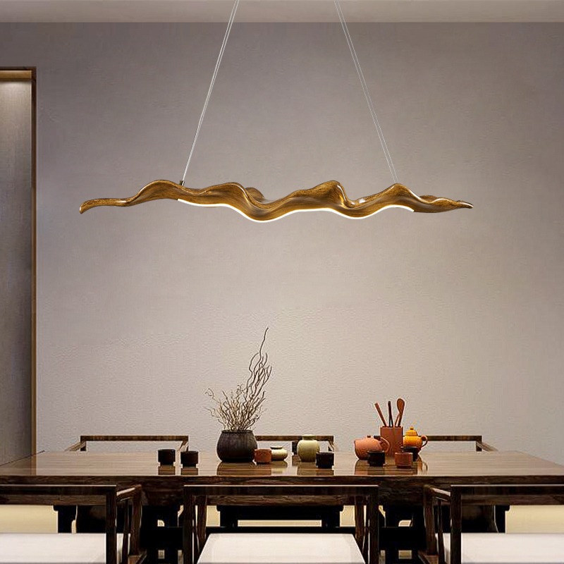 Lampu gantung ruang teh Zen cina lampu meja panjang kayu imitasi studio belajar lampu ruang makan gaya jepang senyap