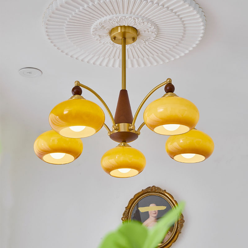 Lampu Gantung Kayu Solid Kaca Pedesaan Kamar Tidur Ruang Makan Retro Gaya Amerika Lampu Gantung untuk Kesemek Ruang Tamu