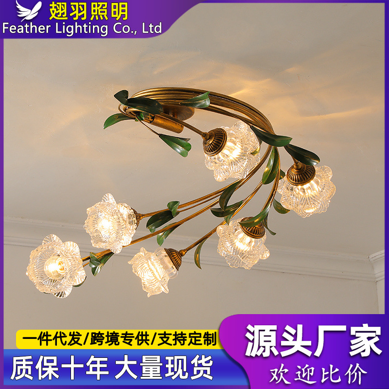 Lampu gantung tembaga, lampu gantung hotel dupleks ruang tamu kreatif Amerika modern minimalis kamar tidur buku kamar