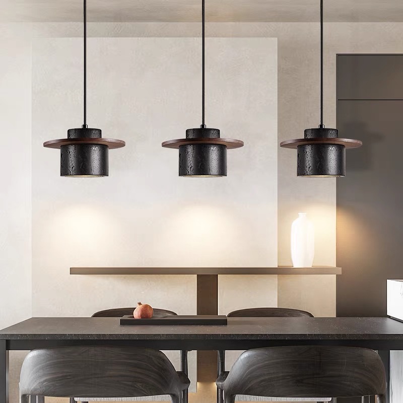 Lampu gantung tunggal semen gaya industri Nordic lampu gantung restoran hot pot restoran ruang makan bar kamar tidur lampu kayu padat samping tempat tidur