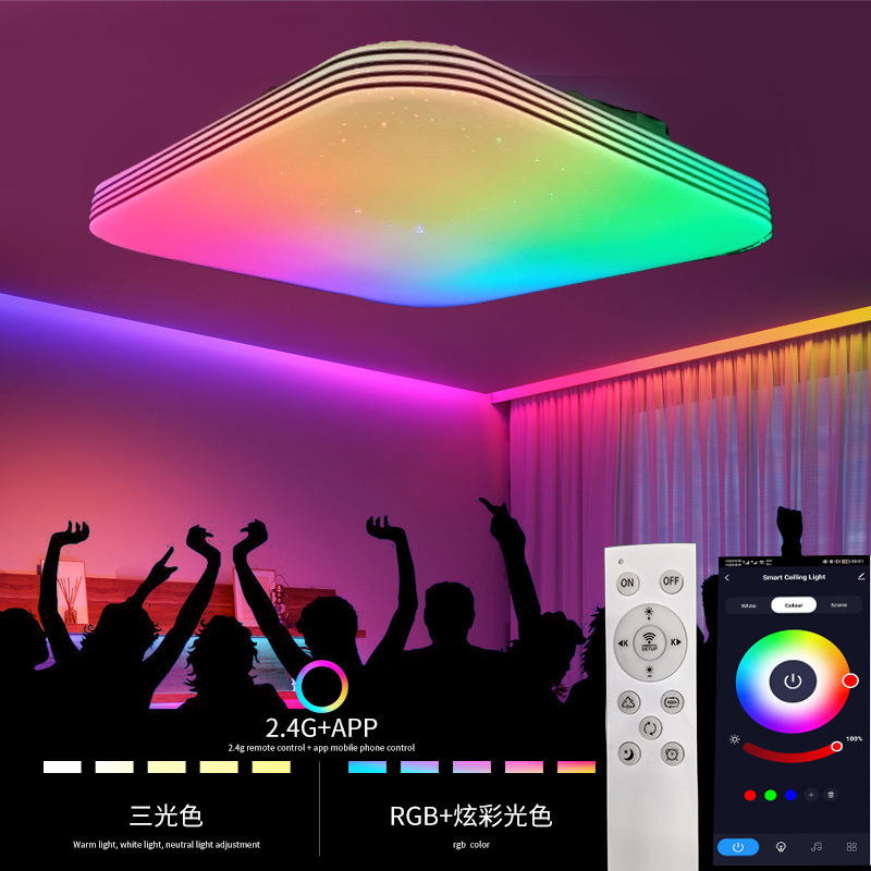 Lampu langit-langit kendali jarak jauh RGB kotak lampu kamar tidur aplikasi wifi Bluetooth grafiti lampu langit-langit warna-warni LED ultratipis pabrik