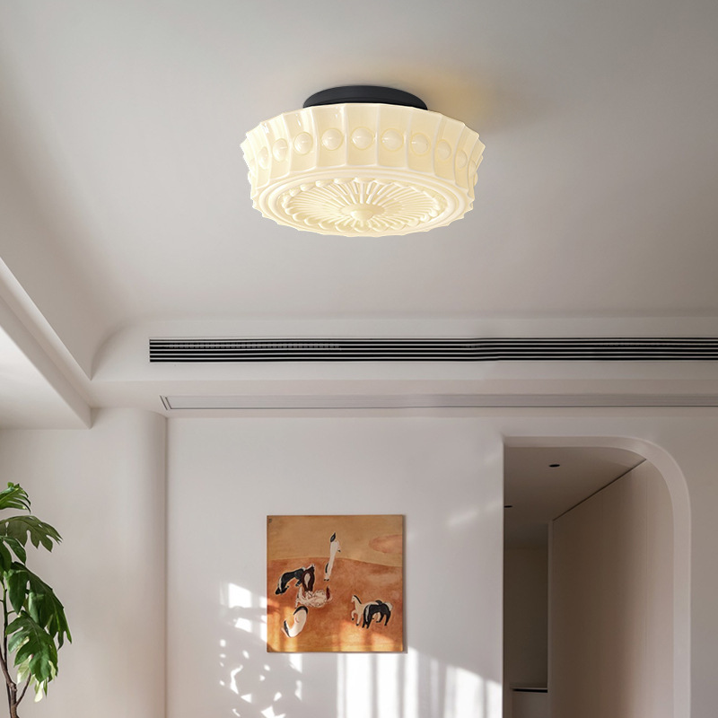 Lampu plafon minimalis, Nordic minimalis kamar tidur gaya kuno modern Perancis romantis cahaya mewah belajar retro krim lampu kaca