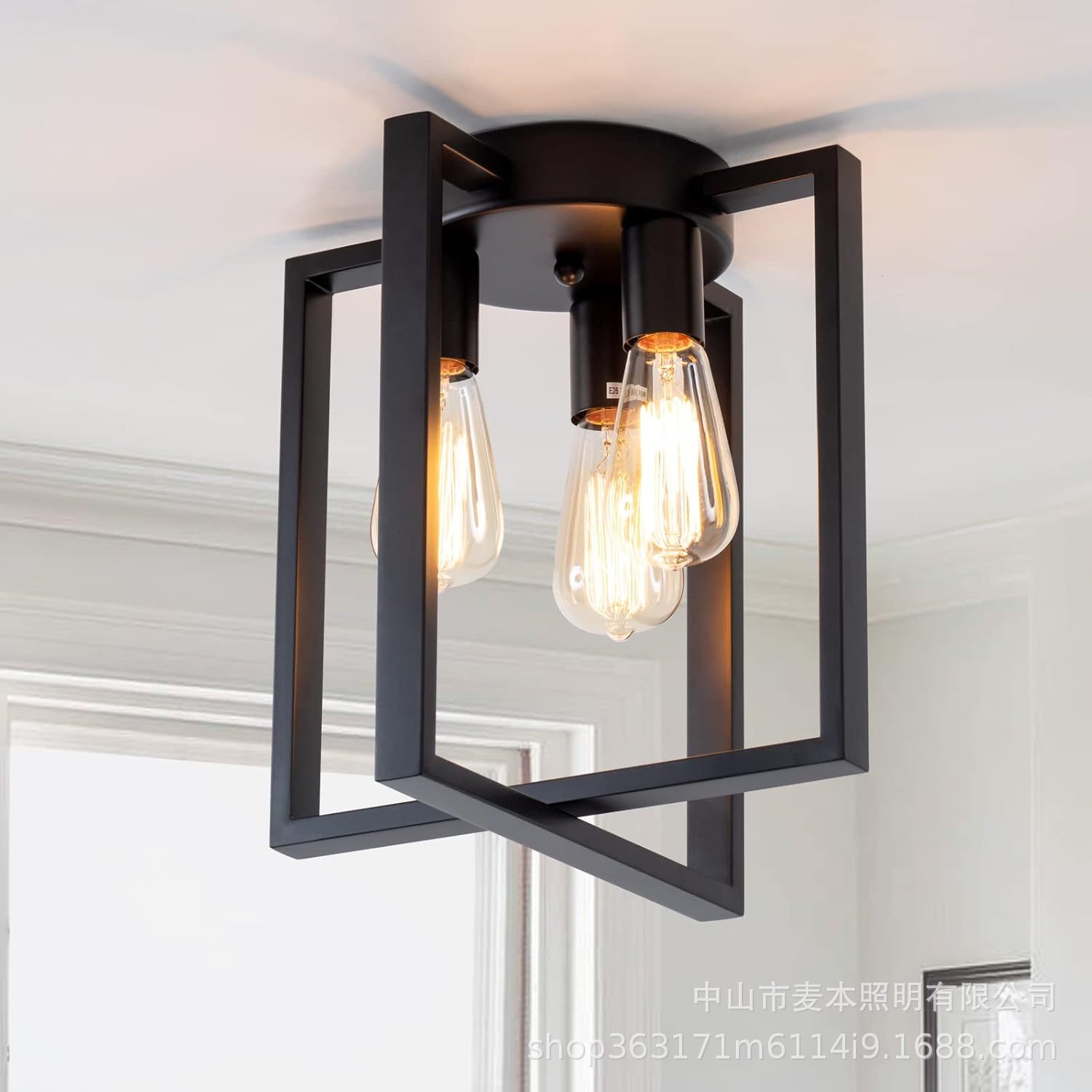 Amazon pemasok grosir rumah pertanian gaya Amerika lampu langit-langit besi hitam lampu kamar tidur lampu pintu masuk dapat dibuat dengan aturan Amerika