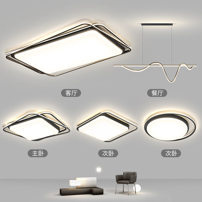 Lampu langit-langit lampu utama ruang tamu, lampu modern sederhana suasana persegi panjang tiga kamar tidur ruang tamu paket kombinasi seluruh rumah