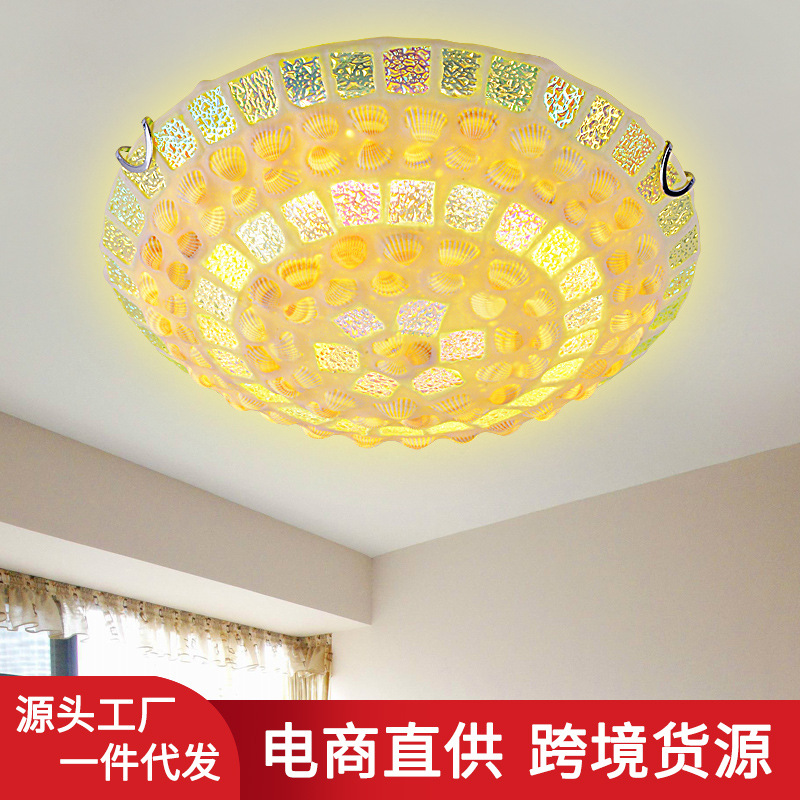 Lampu langit-langit kamar tidur pastoral Eropa sederhana lampu hias cangkang pribadi ruang tamu belajar ruang anak-anak hangat romantis Mediterania