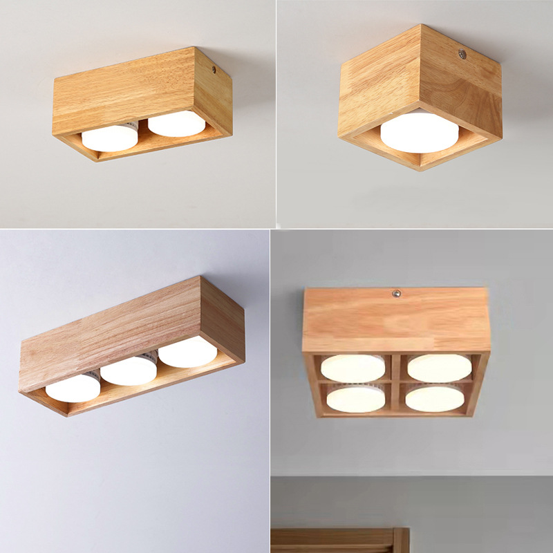Lampu tanpa kepala kayu padat gaya Jepang, lampu pencahayaan permukaan dipasang lampu langit-langit Nordik ruang tamu led lampu sorot kotak kisi