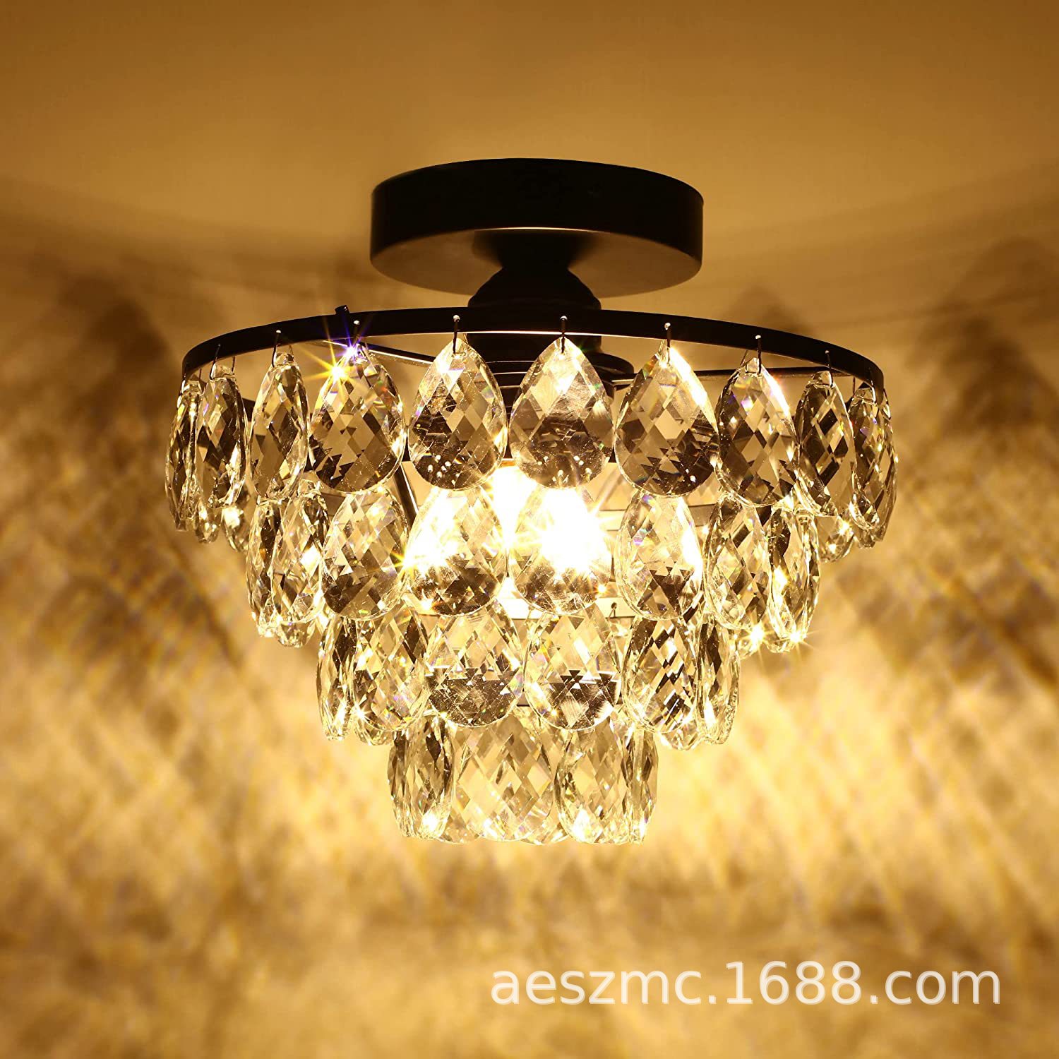 Lampu lorong led sederhana modern dan Amerika, lampu langit-langit kristal Eropa dan Amerika warna hitam, lampu bangunan koridor lorong