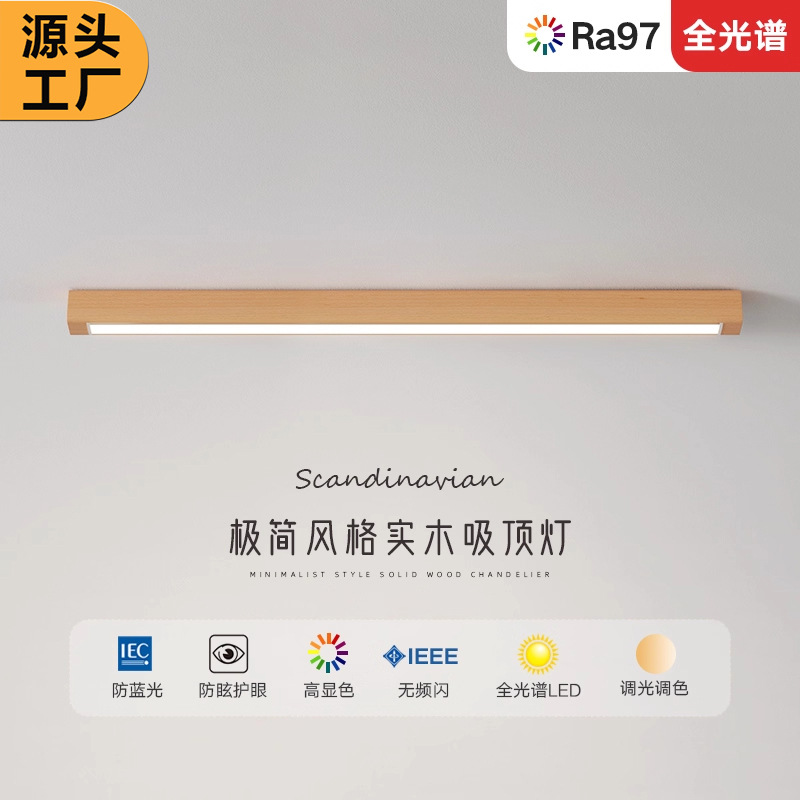 Lampu langit-langit strip kayu solid untuk lorong, perlindungan mata spektrum penuh, warna walnut Nordik, perlengkapan pencahayaan kayu solid Zhongshan