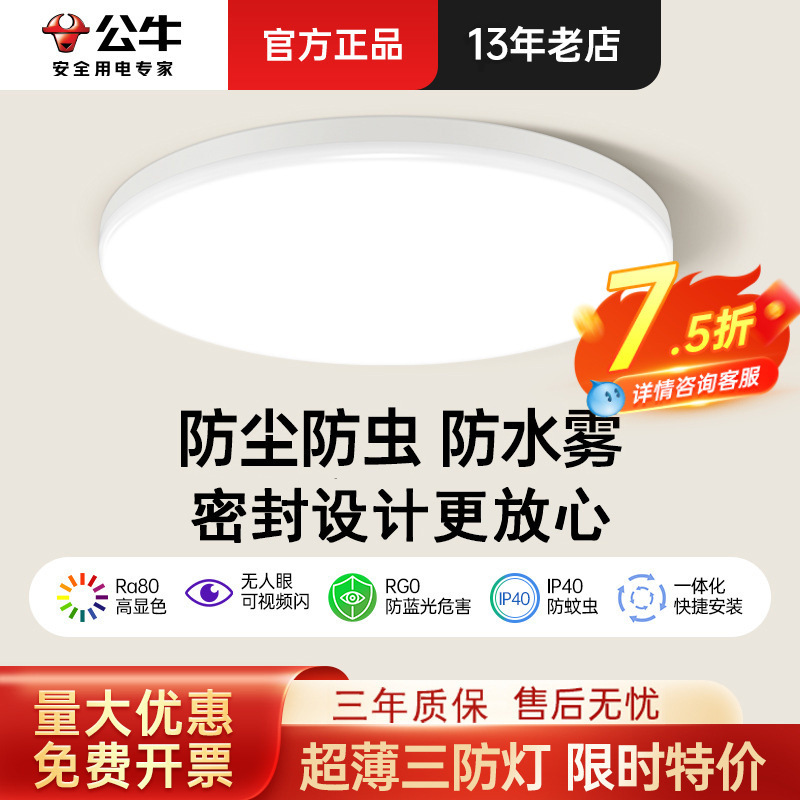 Bull lampu langit-langit led tahan debu, lampu dekorasi rumah koridor, lorong, balkon, kamar tidur, sederhana, tiga lampu tahan serangga