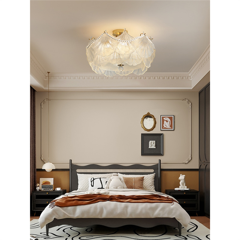 Lampu Kamar Tidur Model Perancis Ringan Lampu Kamar Gaya Krim Kristal Lampu Utama Suasana Mewah Ringan Lampu Mutiara Seni Kreatif