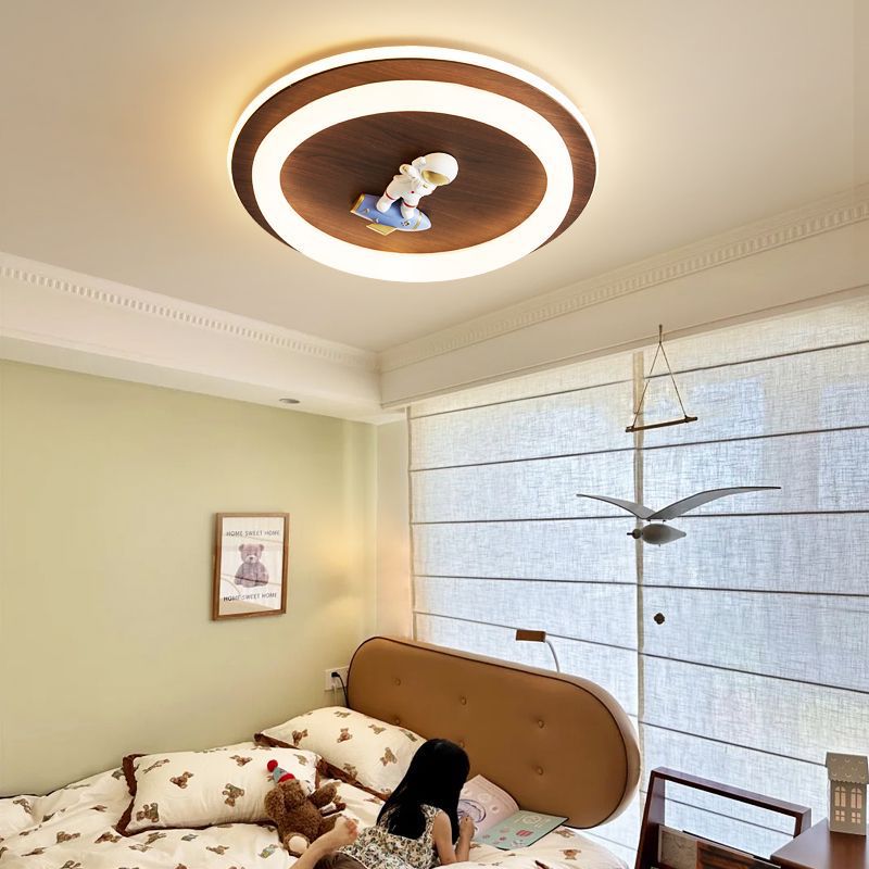 Lampu Kamar Anak-Anak Astronot Lampu Atap Kamar Tidur Kartun Warna Kayu Kenari Retro Lampu Pelindung Mata Astronot Kreatif