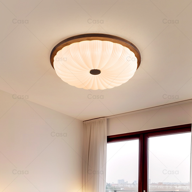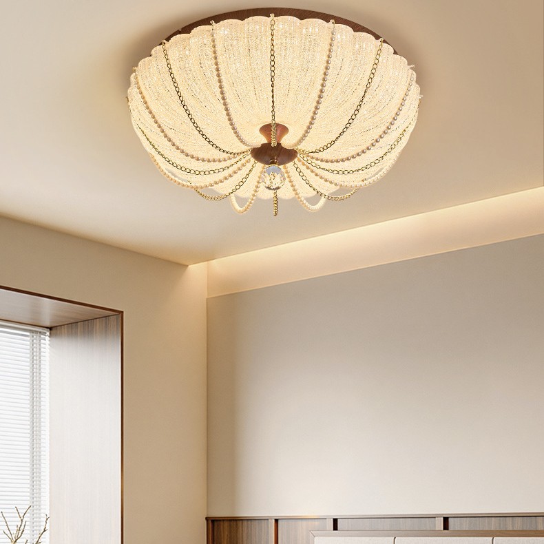 Lampu Langit-Langit Kamar Tidur Spektrum Penuh Lampu Ruang Belajar Pelindung Mata Tipe Perancis Gaya Prancis Lampu Kerang Restoran Walnut Gaya Amerika Casa