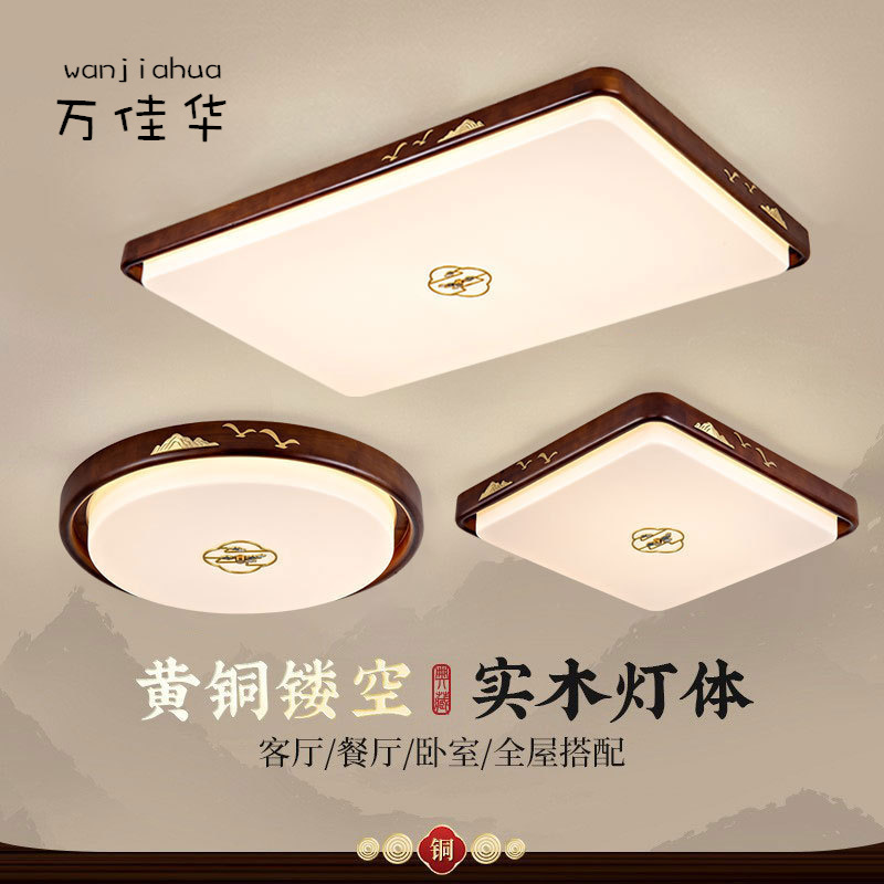 Lampu langit-langit Ruang Tamu Tembaga Gaya Tiongkok Baru Kayu Solid Gaya Tiongkok Zen Retro Dinasti Song Estetika Lampu Aula Ruang Makan Kamar Tidur