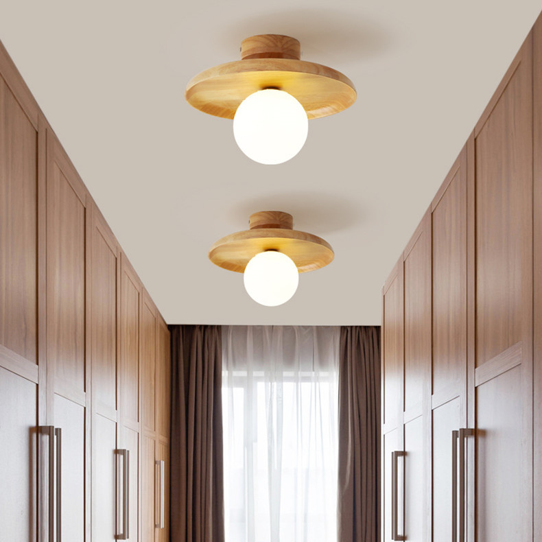 Lampu langit-langit kecil Nordic, kayu padat dipersonalisasi gaya log lampu langit-langit kecil sederhana lorong koridor balkon lampu gaya Jepang lampu kayu