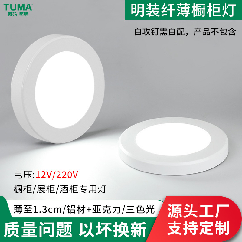 Dalam stok LED permukaan ultra tipis diameter 8CM lampu bebas lubang pasang Terbuka 12V 5W model lemari pamer buatan tangan lampu Downlight ruang tamu
