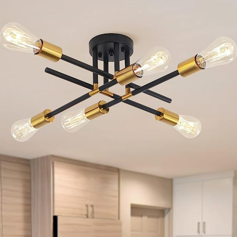 Lampu langit-langit lintas batas Amerika 4 kepala 6 kepala rumah pertanian emas hitam antik ruang makan ruang tamu kamar tidur belajar dapur tempat lilin