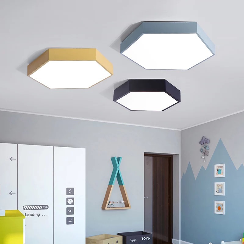 Lampu lED langit-langit macaron ultra-tipis, lampu berlian 6 sisi ruang tamu kamar tidur modern Nordik