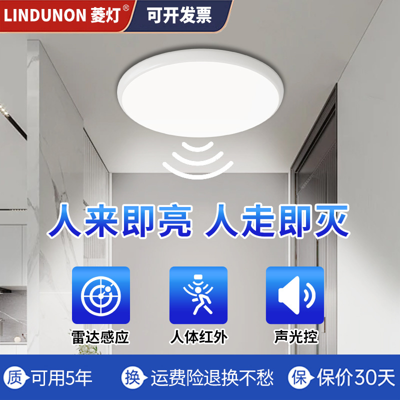 Lampu langit-langit sensor radar LED tahan tiga, anti nyamuk, tangga, lorong, lampu aktif suara manusia, sensor cerdas
