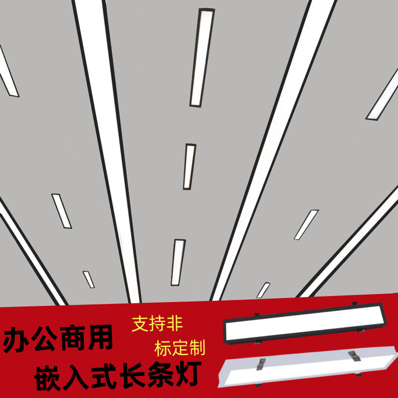 Lampu kantor tanam lampu strip Papan gipsum lampu strip langit-langit tersembunyi lampu datar strip led tertanam