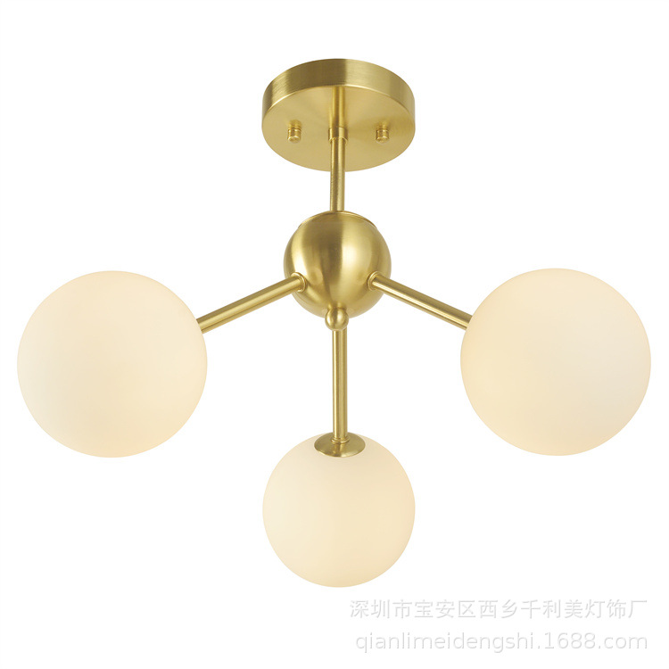 Seni Nordic lampu langit-langit kaca bola tiga kepala lampu nyaman kamar tidur ruang makan ruang tamu belajar perdagangan luar negeri lampu langit-langit bulat