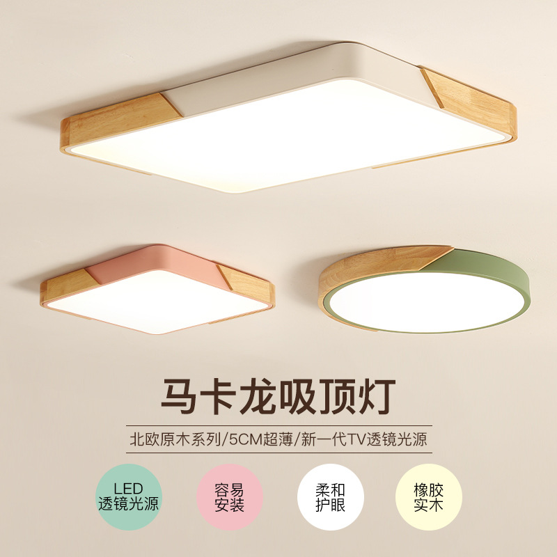 Lampu ruang tamu Nordic lampu kamar tidur modern sederhana lampu ruang kayu padat bulat macaron lampu langit-langit led ultra-tipis