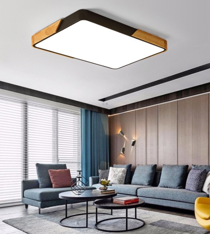 Lampu langit-langit led, lampu langit-langit led macaron bulat lampu kamar tidur modern sederhana elegan rumah tangga persegi panjang kayu ruang tamu