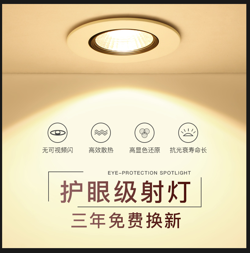 Lampu plafon tanam, lampu sederhana baru 2021, lampu sorot kecil COB rumah tangga, lampu langit-langit LED, lampu ruang tamu, lampu tiga warna