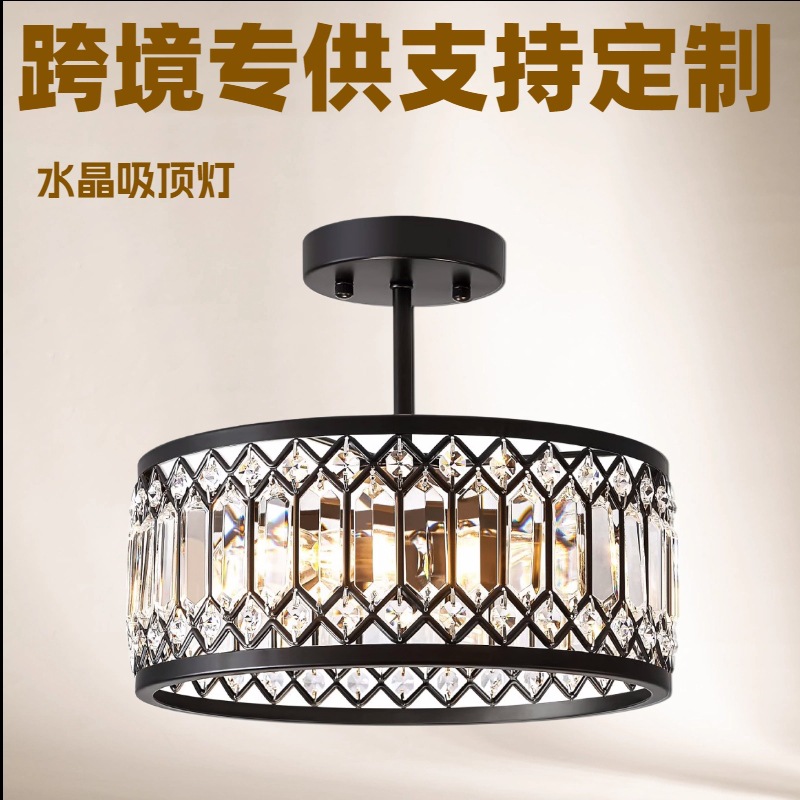Zhongshan Kustom Modern Kristal Lampu Bentuk Bulat Kamar Tidur Gaya Amerika Lampu Ruang Makan Lantai Ruang Tamu Amazon Lampu Langit Sedot