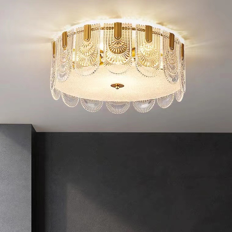 Lampu langit-langit Amerika Semua tembaga bulat modern nyaman lampu kamar tidur sederhana balkon kaca kap lampu rumah tangga anti-nyamuk