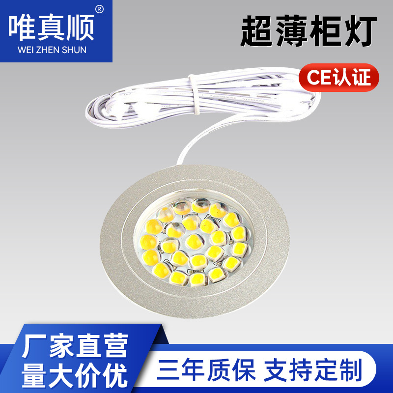 Lampu kabinet LED tegangan rendah, lampu lemari kabinet anggur lampu bulat tersembunyi sangat tipis 3W12V grosir