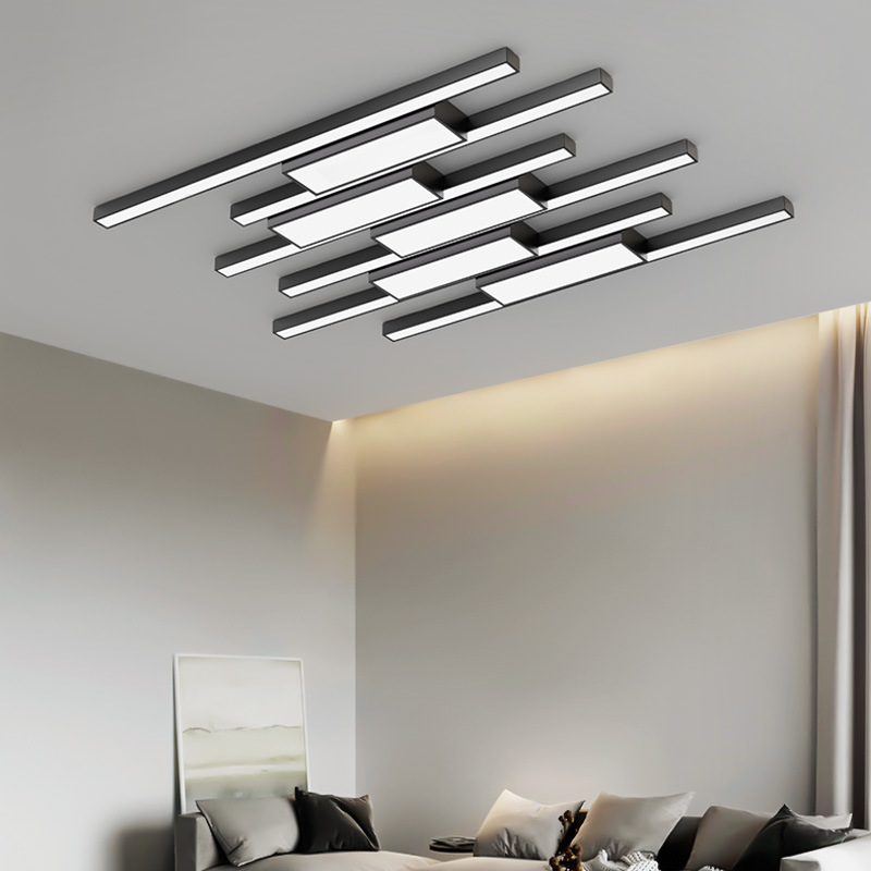 Lampu langit-langit ruang tamu dengan lampu sorot, lampu nirkepala persegi panjang sederhana modern kombinasi paket rumah