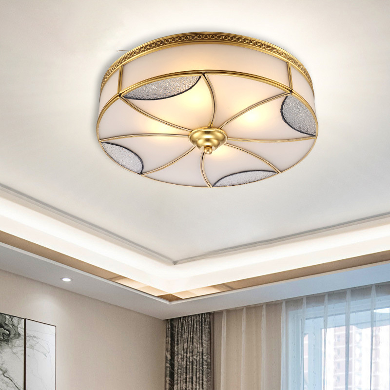 Lampu kamar tidur gaya China, lampu langit-langit kreatif lampu kamar tidur sederhana nyaman lampu ruang makan lampu kamar kepribadian bulat lampu tembaga