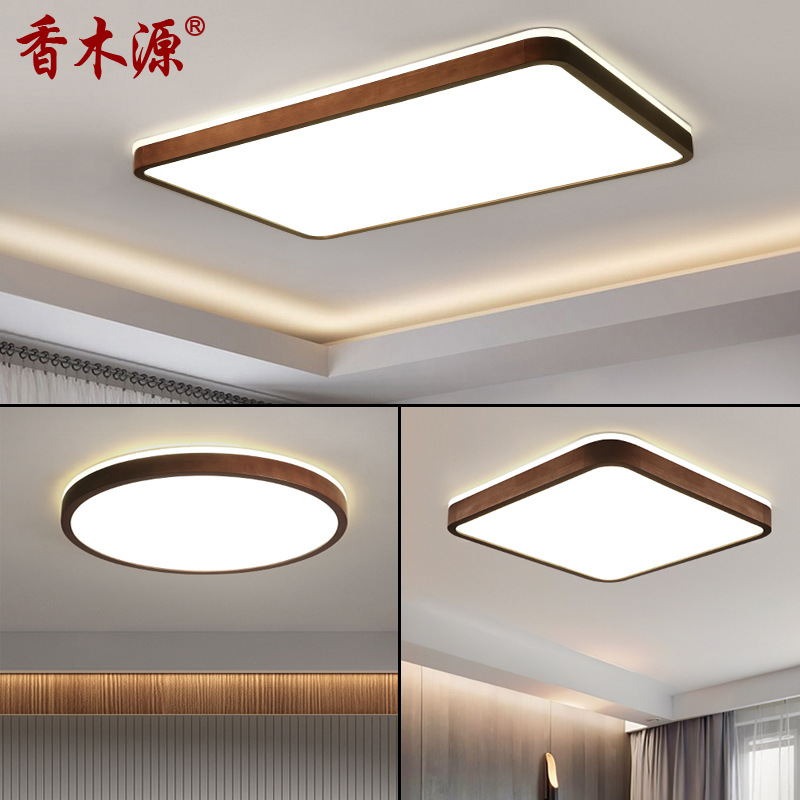 Lampu langit-langit ruang tamu gaya China, lampu kamar tidur kayu solid lampu Nordik warna kenari sangat tipis lampu ruang persegi panjang 8327